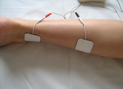 W związku z tym wydaje się, że stymulacja elektrodami dopochwowymi lub dorektalnymi jest skuteczniejsza od elektrostymulacji elektrodami powierzchownymi. Skuteczną metodą w leczeniu pęcherza nadreaktywnego jest również elektrostymulacja nerwu piszczelowego (fot. 5). Najczęściej stosowane parametry impulsów to: częstotliwość od 1 do 10 Hz, czas trwania impulsu od 100 do 300 ms, a czas trwania zabiegu 30 minut. Zabieg ten okazuje się skuteczny nawet, jeśli wykonuje się go tylko raz w tygodniu. Minimalnym okresem terapii jest 5 tygodni.
